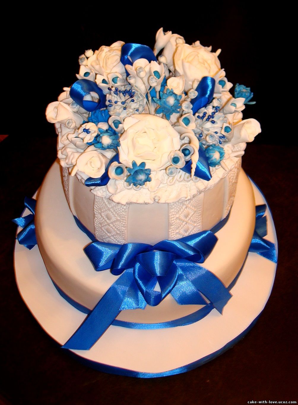 Торт свадебный бело-голубой