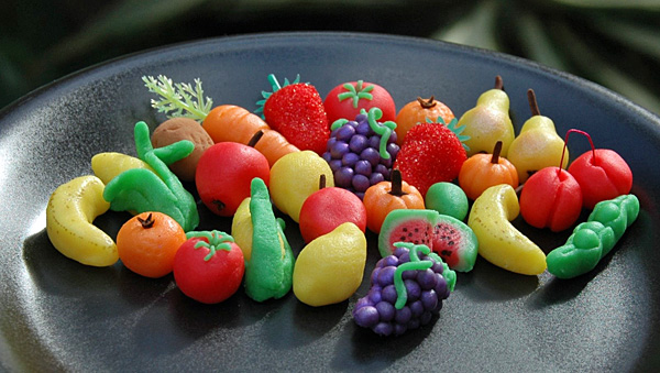 Что же скрывается под этим вкусным названием? Марципан - эластичная смесь сахарной пудры с тертыми, порошкообразными орехами, обычно миндалем. Эта смесь, где сахар составляет от одной трети до двух пятых, дает настоящую, классическую марципанную массу, настолько хорошо формируемую без всяких склеивающих добавок, что из нее можно штамповать конфеты. Такие марципанные конфеты могут глазироваться сахарной, лимонной, шоколадной глазурью.
